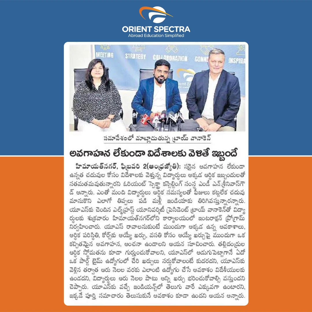 Andhra Jyothi Feature: Risks of Studying Abroad Without Financial Planning