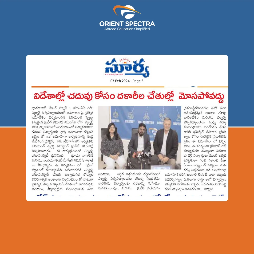 Suryaa Newspaper Coverage: Awareness on Safe Study Abroad